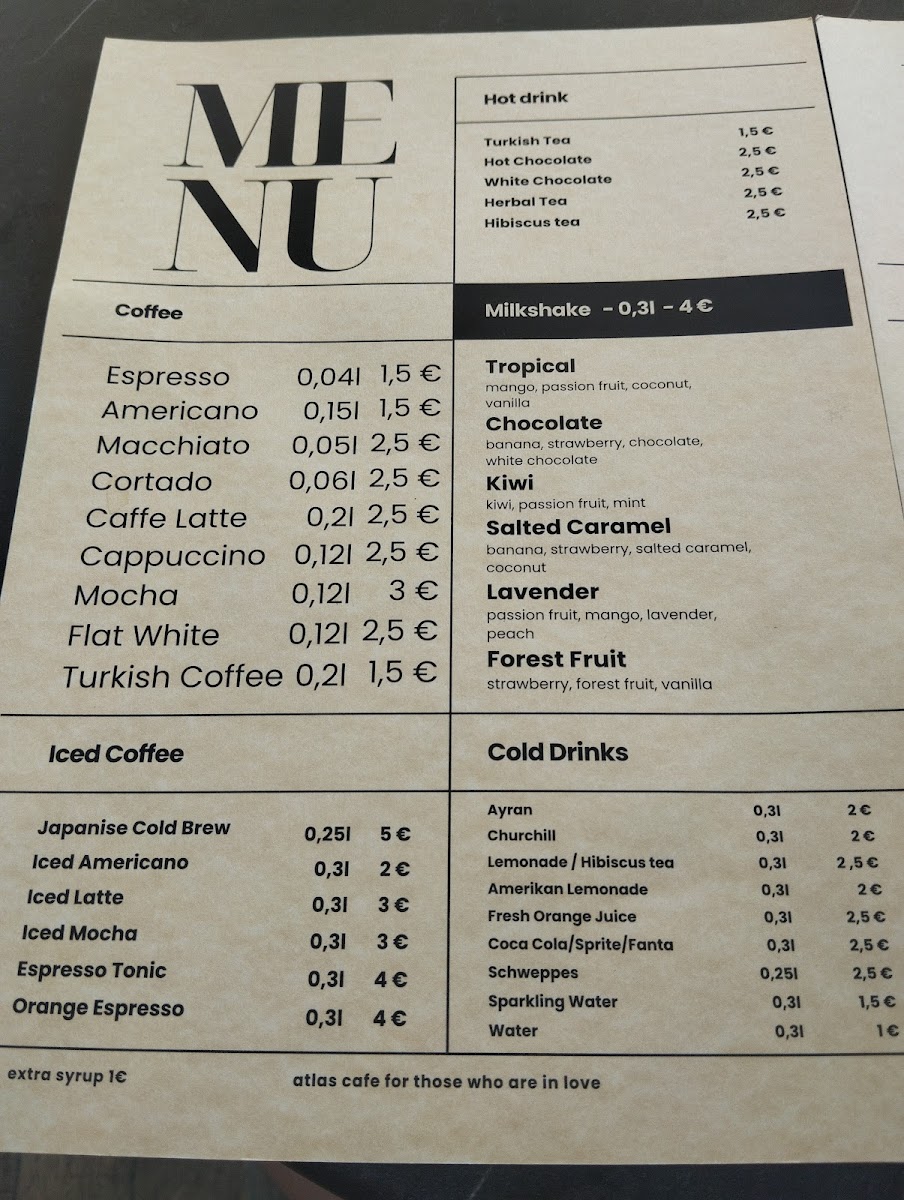 Atlas Cafe is best known for its authentic Turkish breakfast offerings, where every dish tells a story. Imagine savoring a plate of perfectly cooked menemen—a savory, spiced scramble of eggs, tomatoes, and peppers. It’s a dish that not only delights the palate but is also a journey through flavors that speak to heartwarming kitchen traditions. Pair it with a aromatic Turkish coffee or their signature traditional Turkish tea, and you have the perfect start to your day. And the best part? You can do this all for under €6, making every meal a delightful steal!